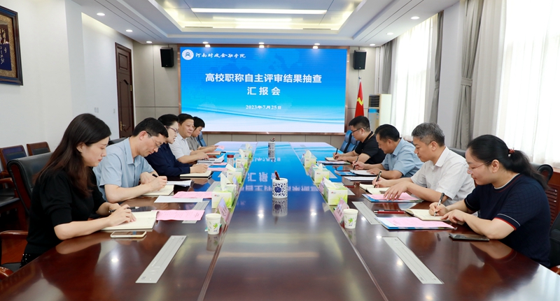 7月25日上午,由河南中医药大学党委教师工作部、人事处处长王剑锋、河南科技大学人事工作部副部长孔令举等一行4人组成的省人社厅高校职称自主评审结果抽查第三专家组,莅临我校开展职称自主评审结果抽查工作。副校长颜敏,人事处相关人员参加了汇报交流会,5位教师代表参加了访谈。
