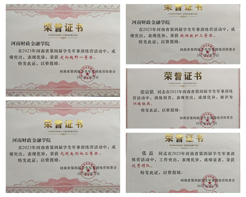 本次军事训练营活动由河南省教育厅、河南省军区战备建设局主办,全省12所本科院校和6所专科院校参加。武装部、校团委积极动员并组织开展了层层选拔,最终选派金融学院张宸铭、金融学院李梦媛、文化与传播学院庄叶航、外国语学院宋海燕4名同学,由张磊老师带队参训。