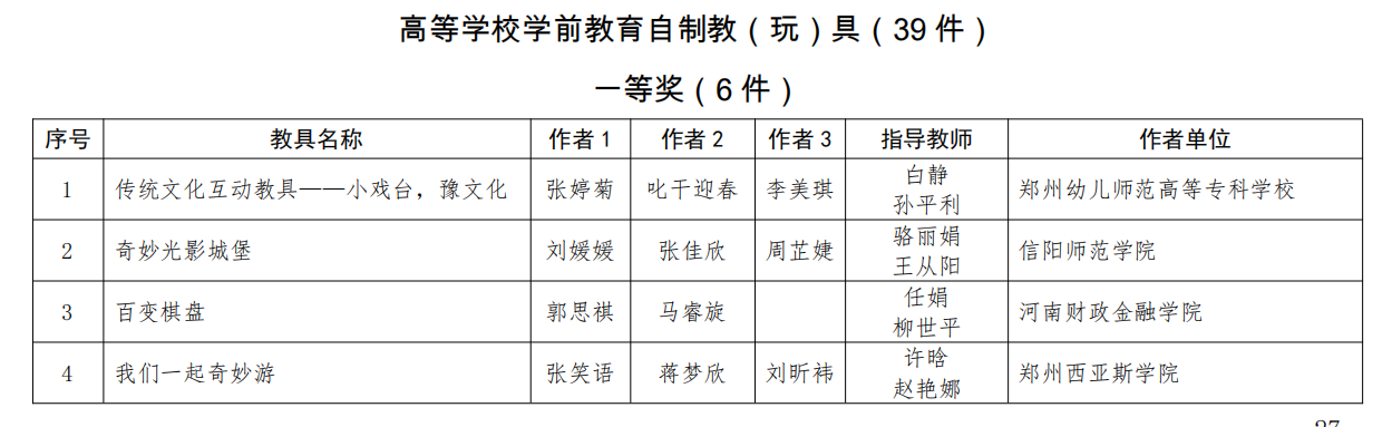 近日,由河南省教育厅组织的“第二十届河南省中小学幼儿园自制教(玩)具暨学生科技创新小制作小发明展评活动”评选结果揭晓,我校教育科学学院2021级学前教育专业学生郭思祺和马睿旋在学院教师任娟和柳世平的指导下通过校赛选拔,代表我校参加省赛,获得了高等学校学前教育自制教(玩)具组一等奖。