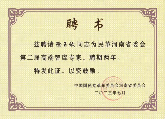 徐玉斌、常晓鹏还被聘为了民革河南省委会高端智库专家。(党委统战部 常晓鹏/文 王国申/审核 )