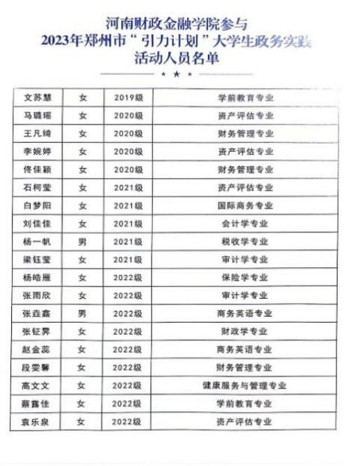 信中指出,2023年度“引力计划”大学生政务实践活动旨在以政务实践活动为切入点,学习贯彻党的二十大精神和习近平总书记重要讲话精神,落实市委青年人才工作精神,助力郑州实施“十大战略”,加强青年人才储备。信中就我校学生在政务实践活动中的相关表现作出特别表扬,强调了我校学生服从安排、踏实工作的认真态度,通过参与机关、企事业单位日常工作,参加寻访活动和座谈会,全角度、多维度走进郑州、了解郑州,在社会课堂中“受教育、长才干、作贡献”,得到了实践单位领导和同事的广泛认可。