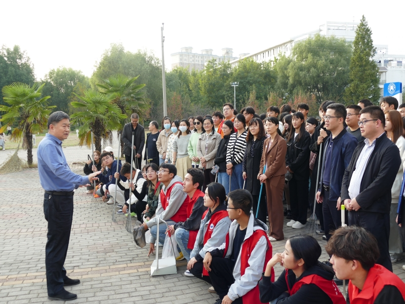 在活动开始前,王孝俊对参加环境卫生清扫活动的师生提出三点要求:一是自己动手,美化环境,是我们学校的优良传统,更是我们中华民族传统美德的具体表现,我们要持续开展,长期坚持;二是劳动最光荣,劳动是文明的灵魂,劳动创造美丽生活。广大教师要不断增强劳动意识,为同学们做好表率,把劳动育人这一重要环节落到实处,师生共同建设美丽校园;三是希望全体师生以本科教学工作合格评估为契机,自觉弘扬、践行良好校风、学风和教风,为学校迎评促建工作做出应有的贡献。随后,师生们对卫生区域进行集中打扫,大家认真清理主干道、墙角、绿化带里的塑料垃圾、枯枝、落叶,不怕脏、不怕累,展现了火热的劳动热情和饱满的精神状态。