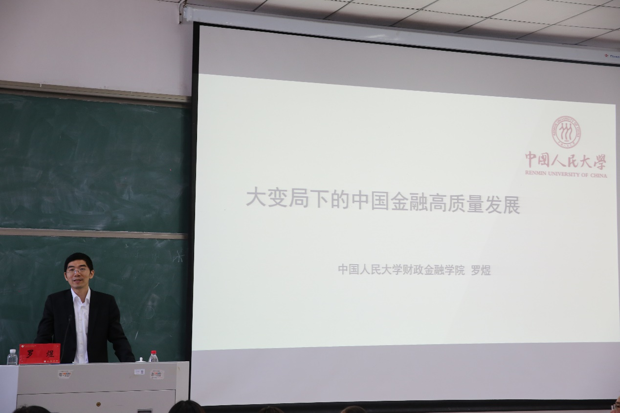 10月23日,中国人民大学财政金融学院博士生导师、党委副书记罗煜教授应邀到校,作了题为“大变局下的中国金融高质量发展”的学术报告。校党委副书记、工会主席王勇军主持报告会。金融学院、财政税务学院、经济与贸易学院师生200余人参加了本次报告会。