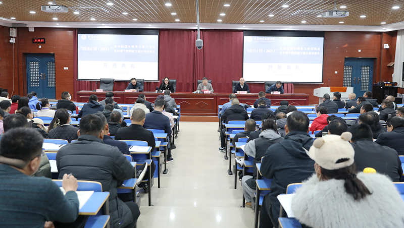 王孝俊在讲话中首先代表学校向参训学员的到来表示热烈欢迎,并简要介绍了学校的历史沿革、办学特色以及近年来在教育教学改革、服务地方经济社会等方面取得的成就。他从深入学习贯彻党的二十大精神、学习贯彻习近平总书记关于教育的重要论述入手,深刻阐述了建设高素质专业化创新型的教师队伍在建设社会主义现代化河南、实现教育强省战略目标中的重要意义,号召广大参训教师以教育家精神为指引,坚持为党育人、为国育才的初心使命,坚定心有大我、至诚报国的理想信念,擦亮专业发展底色,不断提升教书育人本领,在平凡的岗位上继续创造不平凡的业绩。同时,他对学校今后继续发挥传统办学优势、打造教师培训品牌基地、不断增强服务地方经济社会能力等方面作了部署安排。