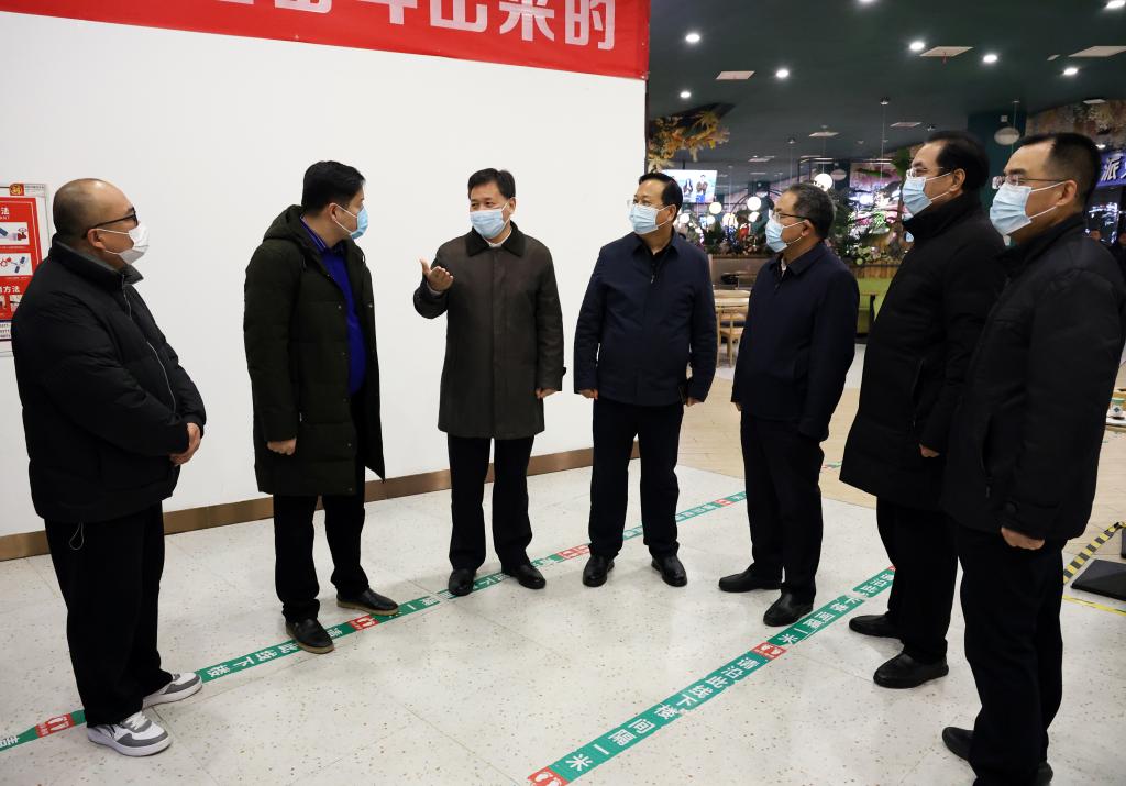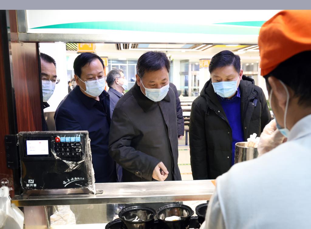 12月15日下午,郑州市人民政府副市长、市公安局党委书记、局长石秀田,市政府副秘书长张江涛,郑州市市场监督管理局一级高级主办朱忠锋,郑东新区管委会主任牛瑞华一行十余人到我校督导检查食品安全工作,副校长方蒙及后勤管理服务中心负责同志陪同检查。
