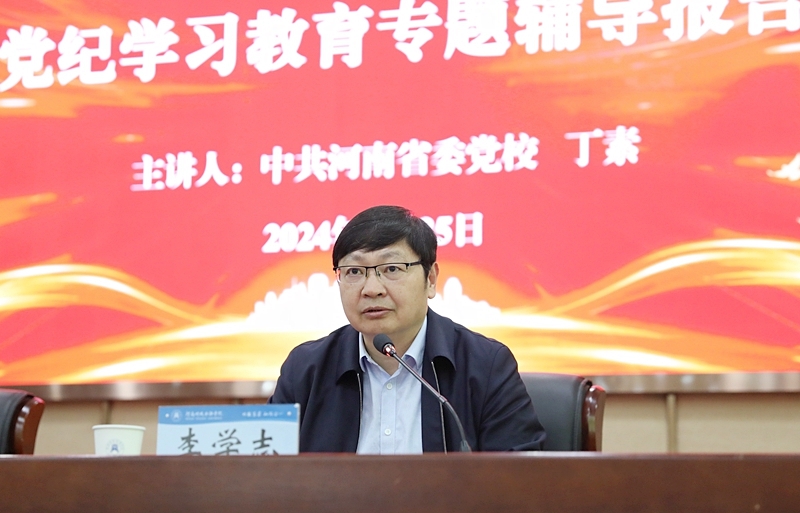 4月25日上午,学校举行党纪学习教育读书班开班仪式。校党委书记王雪云作开班动员讲话,中共河南省委党校(河南行政学院)原教育长、党组成员丁素教授应邀作专题辅导报告。校长李学志主持开班式。校领导王勇军、刘云兵、颜敏、王忠勇、杨伯坚出席开班式。