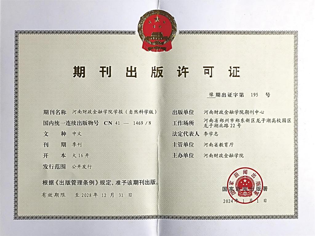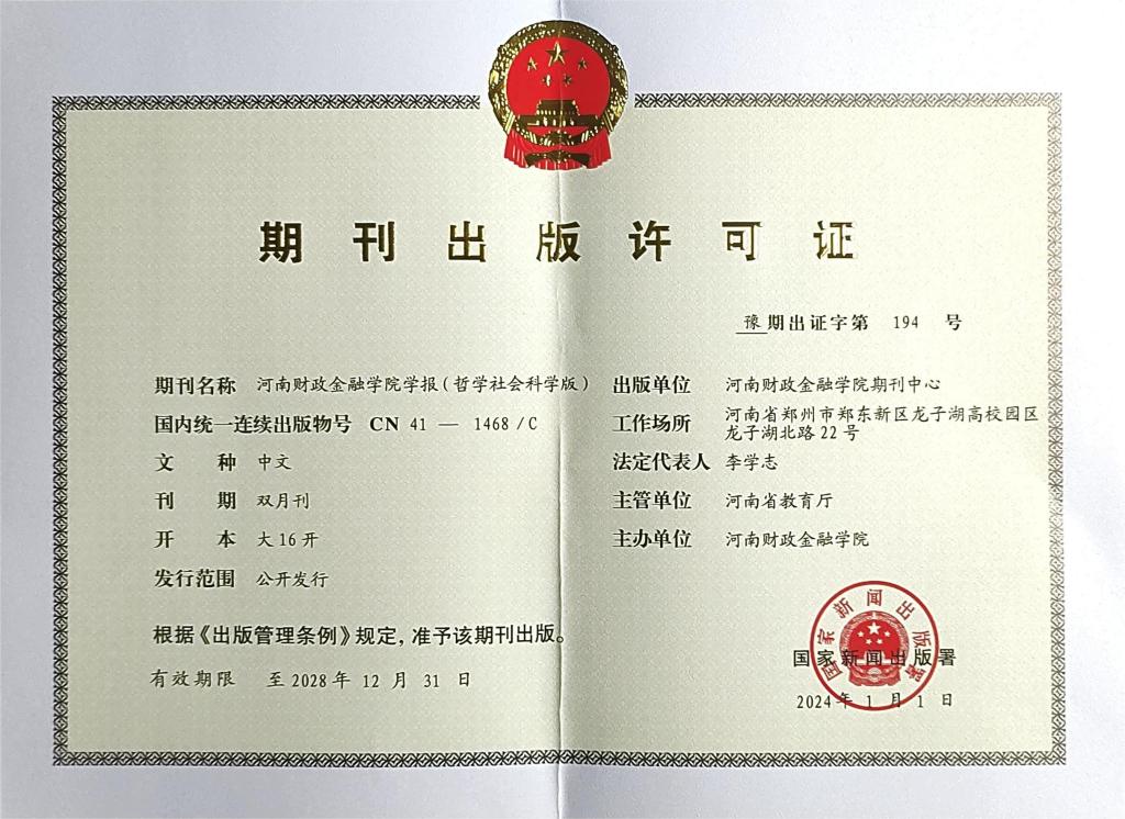 在学校党委、行政的正确领导下,在河南省新闻出版主管部门的大力支持下,经国家新闻出版署批准,《河南财政税务高等专科学校学报》(CN 41-1267/F,ISSN 1008-5793)更名为《河南财经学刊》(CN 41-1472/F,ISSN 2097-4574),《河南教育学院学报(哲学社会科学版)》(CN 41-1093/I,ISSN 1006-2920)更名为《yl6809永利官网学报(哲学社会科学版)》(CN 41-1468/C,ISSN 2097-4035),《河南教育学院学报(自然科学版)》(CN 41-1246/G4,ISSN 1007-0834)更名为《yl6809永利官网学报(自然科学版)》(CN 41-1469/N,ISSN 2097-4027)。
