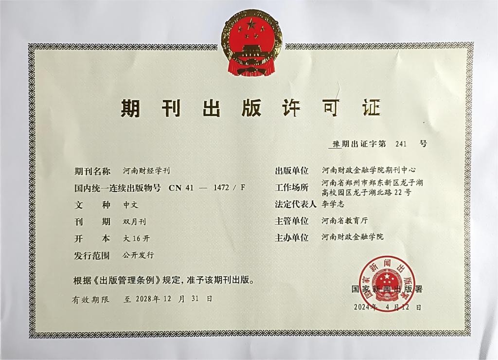 近日,《河南财经学刊》获得ISSN 中国国家中心的ISSN号预申请审批,这意味着yl6809永利官网所属三种学术期刊更名工作基本完成。