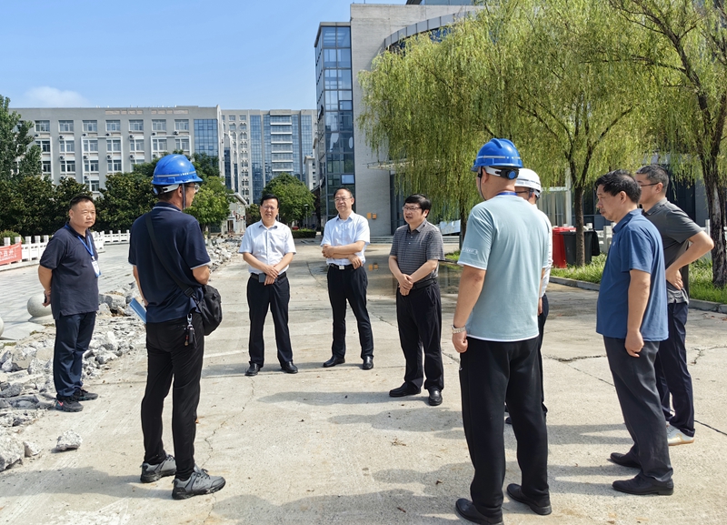 李学志代表学校对不畏酷暑、奋战一线的工作人员表示慰问和感谢,对项目的有效推进给予肯定和认可。他指出,供水管网改造项目是暑期最重要的工程之一,是改善办学条件、提升办学品质、美化校园环境的重要举措,是解决师生诉求、开展增收节支、提升服务育人水平的具体行动,全校教职工生都非常关心、高度关切。围绕下一步项目推进问题,他提出指导意见和明确要求:一要抓安全。安全是工程建设的重中之重,必须树牢“安全第一”意识,严格执行安全规章制度,紧盯关键环节、规范施工流程,确保施工现场隐患排查全覆盖,确保项目建设安全有序,切实堵塞安全漏洞。二要保进度。把好时间节点是确保工程顺利进行的关键所在,必须在保证工程质量的前提下,紧盯时间节点,抢抓有利天气,倒排工期、统筹推进,做好应对预案、留足提前量,加快施工进度,全力解决建设过程中的堵点、难点问题,确保秋季开学前高质量完工并投入使用。三要重质量。要坚持高标准、严要求,坚持科学施工、依规管理,从源头把好材料质量关和施工质量关,抓细抓实过程监管和细节管理,打造经得起历史和师生检验的良心工程、优质工程、品牌工程。四要强联动。各相关部门要牢固树立项目“一盘棋”思想,科学统筹、精心组织,加强多方联动、形成参与合力,在确保施工安全和工程质量的前提下,落细落实责任措施,按时保质完成各项施工任务。