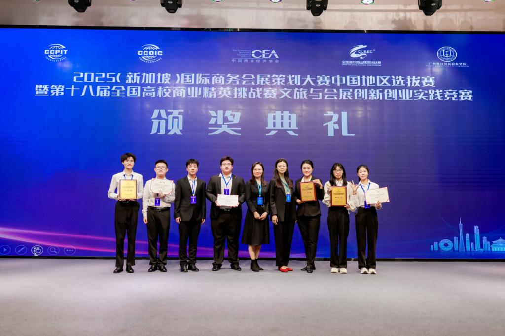 12月1日,2025年(新加坡)国际商务会展策划大赛中国地区选拔赛暨第十八届全国高校商业精英挑战赛文旅与会展创新创业实践竞赛在广州落下帷幕。我校代表队最终斩获全国总决赛团体一等奖三项,并获得2025年新加坡商务活动策划大赛入围奖。其中,2021级会展经济与管理专业王靖辰、方修平、徐苗、蔡倩倩、郝建坤五位同学的项目《2024第一届大学生创新创意实践作品展览会》获得会展策划赛道全国第四名的优异成绩。