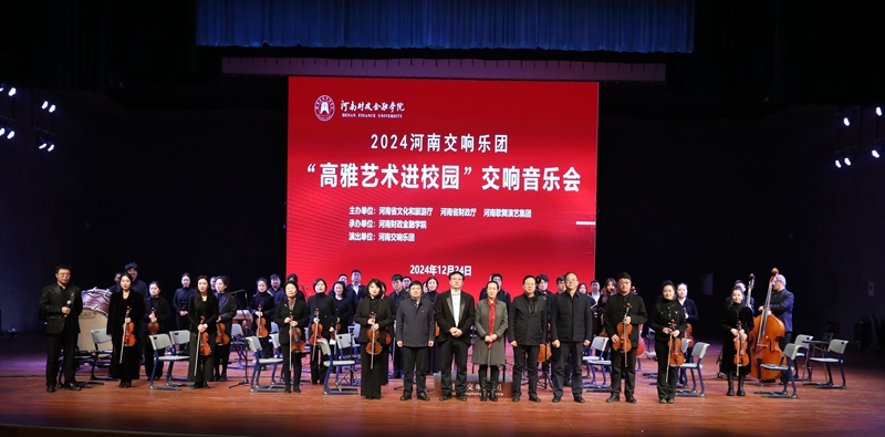 12月24日,由河南省文化和旅游厅、河南省财政厅、河南省歌舞演艺集团共同主办,我校承办的2024“高雅艺术进校园”河南交响乐团专场音乐会在我校艺术中心成功举行。校党委书记王雪云,校长李学志,副校长方蒙、杨伯坚,相关职能部门负责人,各学院党总支负责人等师生代表1000余人现场欣赏了音乐会。