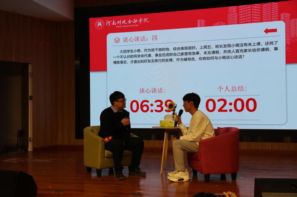 比赛中,参赛选手围绕案例分析、谈心谈话等环节展开激烈角逐。在案例分析环节,选手们凭借扎实的专业知识和丰富的实践经验,在规定的时间内精准剖析问题本质,提出切实可行的解决方案。他们思路清晰,逻辑严密,充分展现其对学生工作的深入理解和精准把握。谈心谈话环节更是精彩纷呈,面对饰演问题学生提出的各种问题,辅导员们耐心倾听、循循善诱,展现出卓越的沟通技巧和对学生的关怀爱护之情。他们用温暖的话语和真诚的态度,打开了学生的心扉,帮助学生解决了一个个困扰他们的问题。