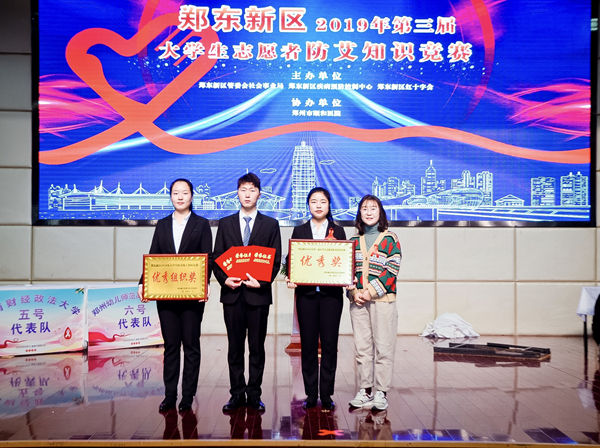 为提高在校大学生艾滋病防治知识水平,引导学生建立良好的生活方式,12月1日,校医院组织财税学院王舒心、张建、王子露三位同学,代表我校参加由郑东新区管委会社会事业局在颐和医院举办的“郑东新区2019年第三届大学生志愿者防艾知识竞赛”。比赛内容包含艾滋病传播途径、预防措施、用药规范及其他关于艾滋病防治的相关知识。