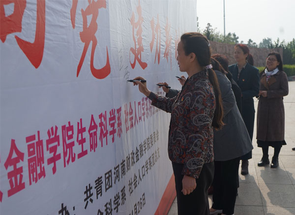 为纪念五四运动100周年,4月26日下午,生命科学系、社会人口学系在郑州花园口事件记事广场举办了“青春心向党·建功新时代”特别主题团日活动,党委书记王雪云参加活动并讲话,校团委,生命科学系、社会人口学系主要负责同志,150名团员青年学生参加了活动。