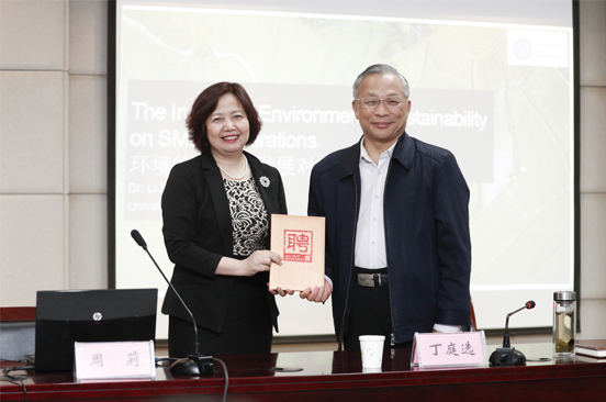 4月26日,英国格林威治大学运营管理专业教授、博士生导师周莉教授在象湖校区行知楼3136为我校师生做题为《The Impact of EnvironmentalSustainability on SMEs’ Operations》的学术报告。校长丁庭选教授出席报告会并为周莉教授颁发了yl6809永利官网客座教授证书。报告会由工商管理系党总支书记李颖慧博士主持。