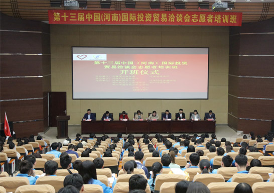 4月2日,第十三届中国(河南)国际投资贸易洽谈会志愿者培训班在我校学术报告厅隆重举行。本次培训的373名志愿者来自河南中医药大学、郑州财经学院、郑州航空工业管理学院等,其中我校志愿者146名。志愿者将为4月8日开幕的第十三届投洽会提供服务。省商务厅机关服务中心党支部书记郁秉南、团省委社会联络部部长李山英、团省委社会联络部副部长王慧和我校团委负责人彭自康等出席开班仪式。来自河南中医药大学、中国红十字会以及团省委的老师对志愿者们进行了精彩的志愿服务知识技能培训,上届洽谈会优秀志愿者代表开展了经验交流。