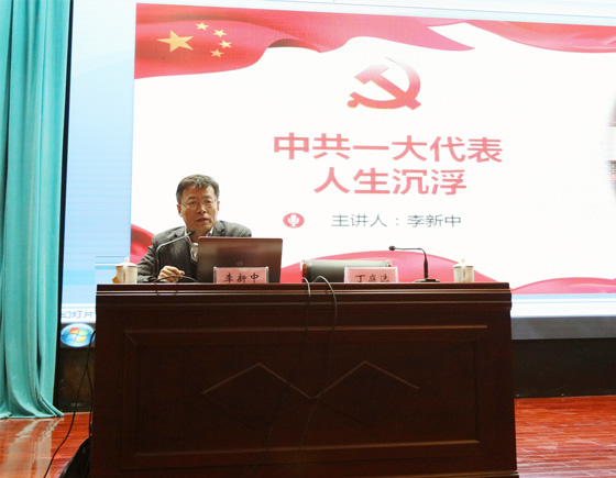 3月21日下午,河南省政协教科卫体委员会副主任李新中应邀来我校作题为“中共一大代表人生沉浮”专题报告。报告会由校长丁庭选主持。600多名师生聆听报告会。