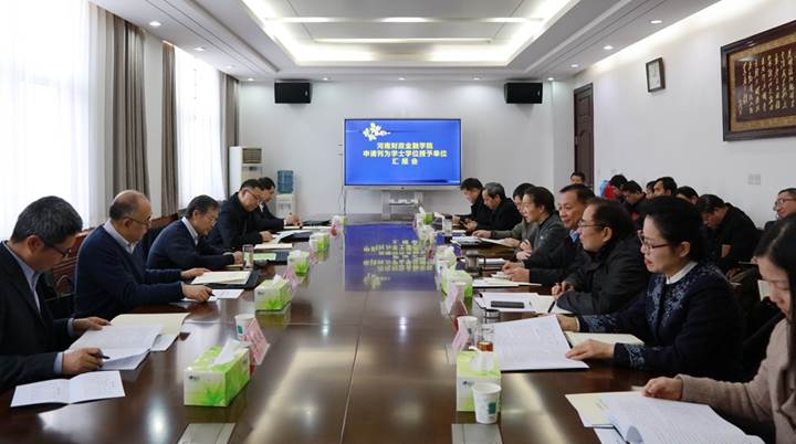 1月14日,我校特邀原河南工业大学校长助理赵予新、河南财经政法大学财税学院院长云伟宏、华北水利水电大学水利学院院长聂相田、河南财经政法大学金融学院院长郑秀峰、河南工业大学管理学院副院长李凤廷组成专家组,通过召开汇报会、查阅资料、实地考察、四个本科专业评估、召开反馈会等五个环节,对我校的学士学位授予单位工作进行预评估。