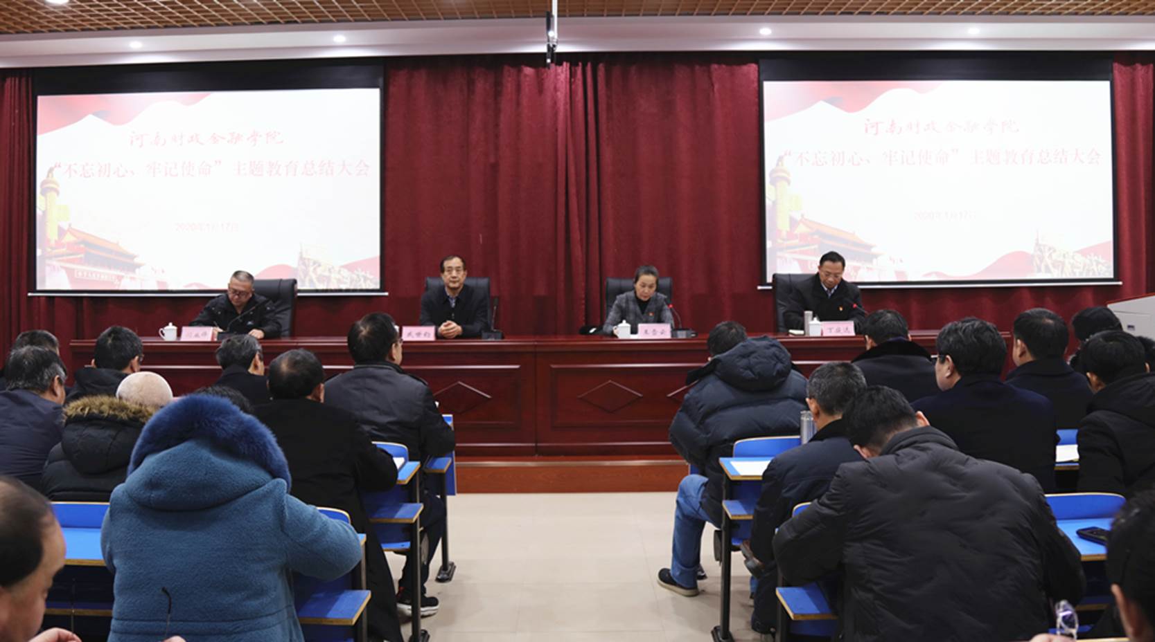 1月17日,学校召开“不忘初心、牢记使命”主题教育总结大会。省委第十巡回指导组组长戚世钧、成员闫业锋到会指导。校党委书记王雪云,党委副书记、校长丁庭选等全体校领导出席会议。会议由丁庭选主持。