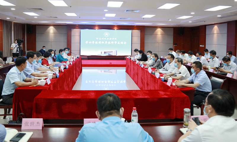 5月22日,由华北水利水电大学副校长刘汉东教授任组长,河南省学位委员会办公室领导刘慧玲,郑州大学王海杰教授,河南工业大学孙中叶教授,郑州轻工业大学张东初教授,河南财经政法大学方拥军教授,河南省学位委员会办公室周朝霞、张华平为成员的河南省新增学士学位授权单位与授权学科(专业)审核专家一行8人莅临我校,对我校申请增列学士学位授权单位和4个授权学科(专业)资格进行审核评审。