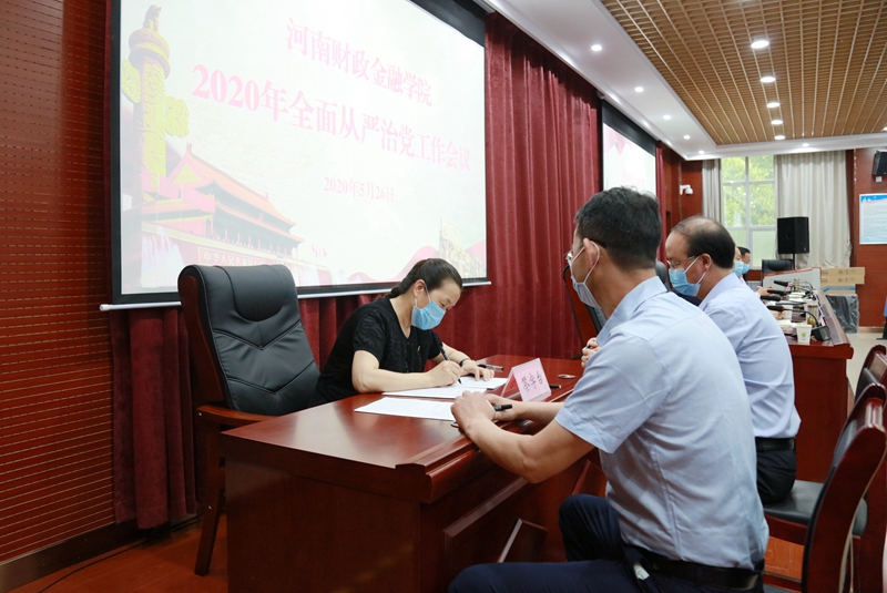 5月26日下午,我校在龙子湖校区启智楼101教室召开2020年全面从严治党工作会议,深入学习贯彻十九届中央纪委四次全会、十届省纪委五次全会和全省教育系统全面从严治党工作会议精神,对2020年全面从严治党工作进行部署安排。