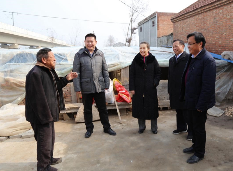 1月18日,在新春佳节即将来临之际,校党委书记王雪云、校长丁庭选、党委副书记王勇军一行赴我校校地结对帮扶县虞城县和定点帮扶村稍岗镇后吴村走访慰问困难群众,看望驻村第一书记,调研指导校地结对帮扶工作。虞城县委常委、副县长扬朴,县扶贫办、稍岗镇、后吴村委领导及我校相关职能部门负责同志参加走访慰问。