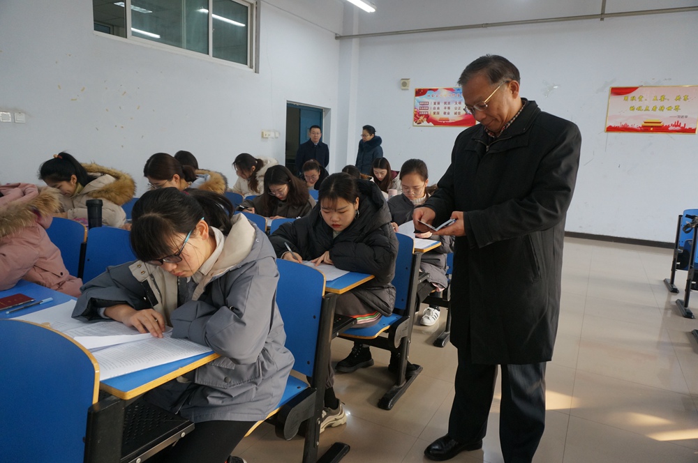 校领导对两校区考试组织工作、考试课程、监考教师履职、考场环境、考场秩序、视频监控等情况进行了详细检查,仔细了解考场环境和教师监考、学生考试、诚信考场等方面情况,认真查看试卷、考场记录单、总控中心监控等,对井然有序的考场组织、良好的考场纪律给予肯定。
