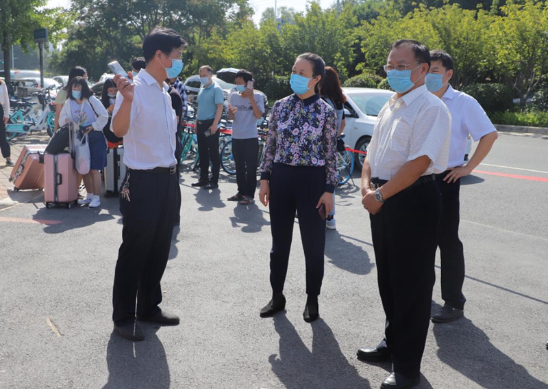 校领导王雪云、丁庭选、王孝俊等分别到龙子湖校区、象湖校区,看望返校归来的学生,检查返校复学相关工作并慰问现场工作人员和学生志愿者。校党委书记王雪云先后来到教学楼、食堂、宿舍等场所,详细了解学生报到、教学准备、卫生安全、值班值守等各项工作的开展情况,与返校学生亲切交流,叮嘱他们要及时向家人报平安,让父母放心。校长丁庭选表示,要从严从细落实防控措施,在做好各项检测工作的基础上为学生提供优质周到的服务,切实做好返校复学工作。