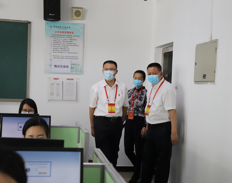 9月5日上午,省财政厅党组书记、厅长王东伟,党组成员、副厅长赵学东,郑州市财政局党组书记、局长赵新民等一行来我校巡查指导2020年度全国会计专业初、中级技术资格无纸化考试组织工作。校党委书记王雪云、校长丁庭选、副校长王孝俊和相关部门负责同志陪同巡查。