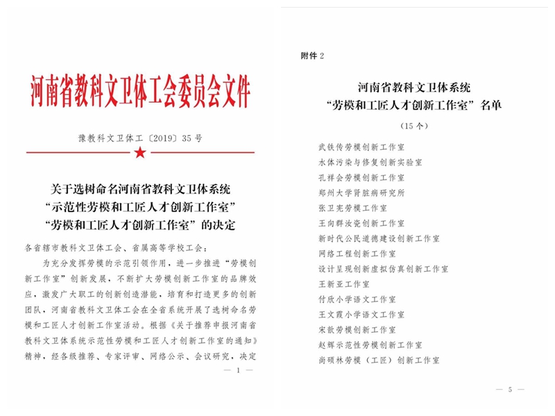 近日,河南省教科文卫体工会委员会公布了2019年度“示范性劳模和工匠人才创新工作室”“劳模和工匠人才创新工作室”的评审结果,我校艺术设计学院“王向群汝瓷创新工作室”获得“劳模和工匠人才创新工作室”殊荣。