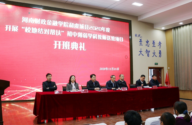 11月21日,我校和虞城县“校地结对帮扶”初中学科教师“送教到县”培训班开班典礼在虞城县第一实验小学举行。我校纪委书记、监察专员刘云兵,虞城县政协副主席李建设、县扶贫办、教体局及我校党委组织部、教师教育培训部有关负责同志参加开班式。