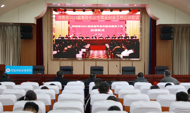 12月15日下午,河南省教育厅联合省发改委、省工信厅、省财政厅、省人社厅、省退役军人事务厅、省国资委、省军区动员局、团省委、省妇联等部门在郑州举办2021年全省高校毕业生就业创业工作启动仪式。省委教育工作领导小组秘书组组长、省教育厅党组书记、厅长郑邦山出席会议并讲话,省教育厅学生处处长、二级巡视员李培俊主持会议。我校在龙子湖校区行政楼一楼会议室设分会场,校领导丁庭选、王建生、王孝俊出席会议,各学院书记、副书记、2021届毕业班全体辅导员和相关职能部门负责同志收看了视频会议。