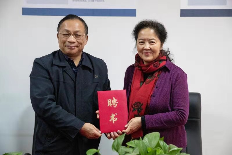 | 丁庭选校长为闵虹会长颁发兼职教授聘任证书 |