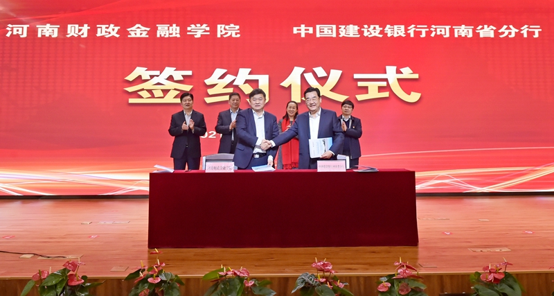 建行河南省分行党委书记、行长梁德顺致辞中指出,建行河南省分行与我校早在30年前就开启了银校合作的大幕,开展了广泛而有成效的业务合作,建立了深厚的友谊。进入“十四五”,面对省委省政府擘画的加快建设现代化河南的新蓝图,双方也迎来了新的发展机遇。此次战略合作协议的签订,掀开了双方进一步深化合作的新篇章。建行河南省分行将以此为契机,充分发挥国有大行骨干作用,向我校及广大师生提供包括融资、结算、智慧校园建设,以及个人金融服务在内的一揽子综合金融服务,并在“产教融合实训基地”共建上深化合作,全方位助力我校高质量发展,共同打造银校合作共赢新标杆。