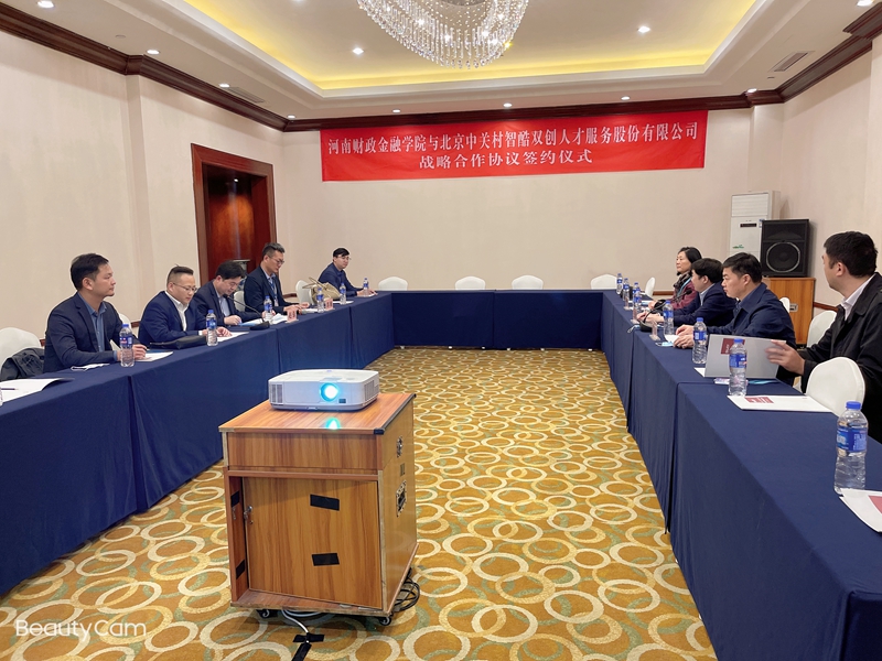 王忠勇代表学校对北京中关村智酷双创人才服务股份有限公司长期以来对我校创新创业教育发展给予的支持和帮助表示感谢。王忠勇简要介绍了学校的历史沿革、学科专业、人才培养、校企合作、创新创业等情况,高度评价了北京中关村智酷双创人才服务股份有限公司在软件研发、双创教育方面取得的成绩。王忠勇指出,我校与北京中关村智酷双创人才服务股份有限公司进行战略合作,并携手共建“yl6809永利官网创新创业实践基地”,是校企双方深入推进产教融合、校企合作、协同育人的重要成果,是校企双方在数字经济背景下积极响应国家“大众创业,万众创新”的具体体现,对进一步深化我校双创教育改革、提升毕业生就业竞争力、提高人才培养质量等有着积极的推动和促进作用。期待双方本着“资源共享、优势互补、互利共赢、共同发展”原则,推动新工科、新文科背景下财经类应用型本科院校的双创教育改革,提高学院服务河南区域经济建设和社会发展能力。