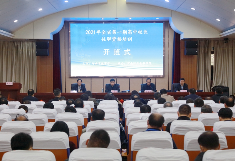 10月28日上午,全省2021年第一期普通高中校长任职资格培训班第一次集中培训在我校顺利开班。副校长王孝俊、省教育厅人事处副处长张志海出席开班式并讲话。来自郑州、开封、洛阳等10个地市100名参训校长,培训班项目负责人与班主任团队共同参加了开班仪式。校教育干部培训部负责同志主持开班仪式。