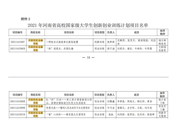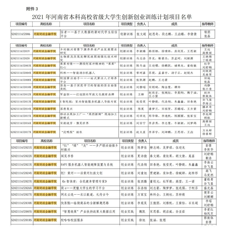 近日,河南省教育厅公布了《关于公布2021年国家级大学生创新创业训练计划项目的通知》(教高〔2021〕359号),我校大学生创新创业项目获得国家级大学生创新创业训练计划立项5项,省级立项23项,立项数量再创新高。