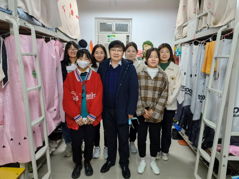 为扎实落实学校党员领导干部联系学生宿舍制度,11月9日,校长李学志到所联系的金融学院4个学生宿舍,深入了解学生思想、学习、生活情况,金融学院相关负责人随同走访。