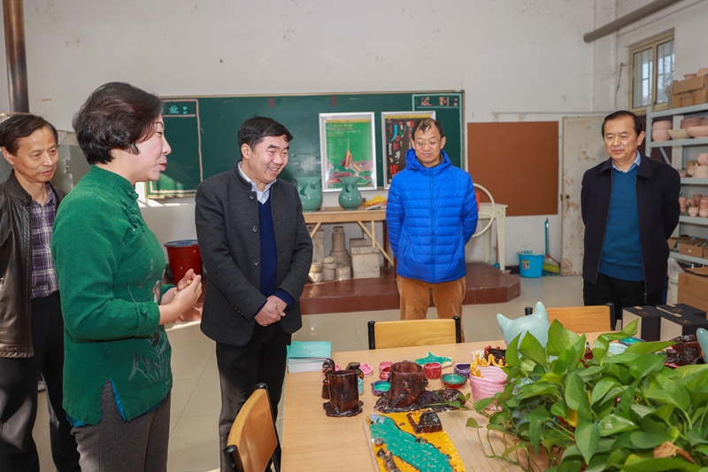 王忠勇在致辞中讲到,“焠青堂”汝瓷烧制技艺传习所经过艺术家的共同努力,在教学、科研等方面取得优异成绩,也取得了良好的社会服务效果,扩大了我校的知名度。他提出三点希望:一是要加大创新力度。重视传统工艺的创新,不断打造制作新作品。二是要加大人才培养力度。在创建国家级、省级一流课程和培养创新人才方面有所突破。三是要加大交流力度。加强非遗的宣传与推广,深化交流合作,进一步弘扬传统文化。随后,参加揭牌仪式的领导参观了“焠青堂”汝瓷烧制技艺传习所并进行了座谈交流。