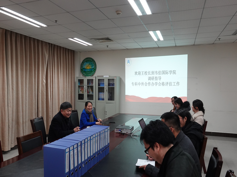 12月13日,副校长王孝俊深入韦伯国际学院,检查指导中外合作办学评估准备工作。