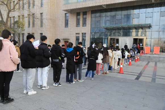 此次疫苗接种工作时间紧,任务重,为了保质保量完成接种工作,志愿者们早上7点多就来到接种现场,协助医护人员做好现场布置工作,按照流程,规范设置了预检测温区、等待区、登记区、接种区、留观区和应急处置区,并做好各个区域人员分配工作。疫苗接种过程中,志愿者积极引导师生排好队伍、有序登记信息、有序接种疫苗、做好观察区的服务工作,尽量减少师生的等待时间,保证了整个接种现场秩序井然。经过努力,圆满完成了1万4千多名的师生疫苗接种工作,构筑了校园防疫安全屏障。