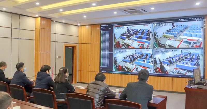 12月25日上午,校领导王雪云、李学志、王忠勇来到龙子湖校区总控中心,通过视频系统察看各考场秩序,要求各部门务必要千方百计克服困难,周密细致组织好考试保障工作,确保应考尽考,坚决守住不发生疫情传播的底线。要从严从实做好师生健康监测、考点错峰出入、考场通风消杀、防疫物资准备等工作,切实保障好师生安全和考试安全。要进一步强化考场管理,及时回应考生关切,维护考场周边秩序,做好各项应急准备,确保考试顺利圆满。