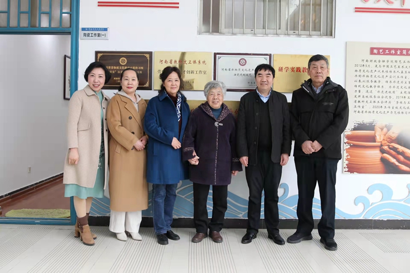2月28日下午,河南省工艺美术行业协会名誉会长张玉骉,副会长陈柏伶,河南省非物质文化遗产保护工作专家委员会副主任闵虹到访我校艺术设计学院陶艺工作室。