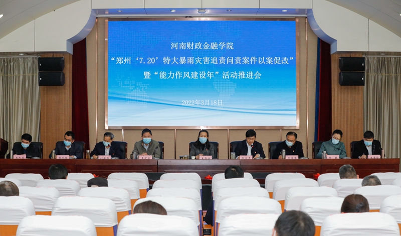 3月18日下午,我校召开“郑州‘7·20’特大暴雨灾害追责问责案件以案促改”暨“能力作风建设年”活动推进会,专题部署学校“7·20以案促改”工作,并对“能力作风建设年”活动进行再安排、再督促。校领导王雪云、李学志、王建生、王勇军、刘云兵、颜敏、张风格、王孝俊、王忠勇出席会议,中层正职参加会议。校长李学志主持会议。