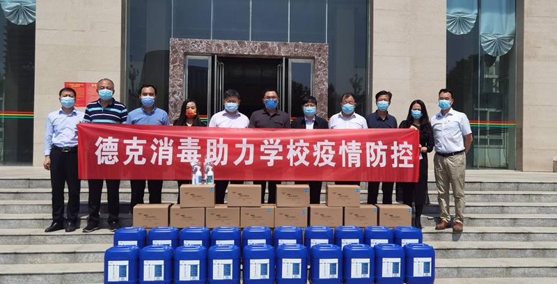 河南德克环境科技有限公司是一家致力于一次性使用医疗用品生产及用于传染病防治的消毒产品生产的技术型企业,掌握先进的消毒杀菌技术,本次向我校捐赠的消毒液正是该企业研发的次氯酸消毒液。