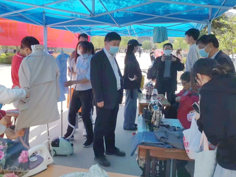 4月20上午,副校长王孝俊在学生处负责同志的陪同下,来到两校区宿舍生活区,实地查看位于龙子湖校区祥园5号宿舍楼和象湖校区融园8号宿舍楼的爱心服务台。服务台前,宿管阿姨和宿管大叔们使用缝纫机、挂烫机、蒸汽熨斗、修车工具等为学生提供暖心服务。王孝俊对参与活动的同志表示了感谢,他指出学生处要结合学生的实际需要,定期开展此类活动,增加便民服务项目,切实解决同学们在校期间遇到的难处,以扎实的行动为学生服好务,真正把学校开展的“能力作风建设年”活动落到实处。