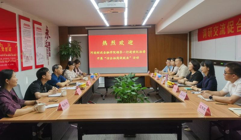 在座谈交流中,刘云兵介绍了我校人才培养、学科建设及毕业生就业工作情况,表示学校始终坚持服务地方经济发展的办学定位,对标企业发展改革教育教学过程,提升人才培养质量,为企业和社会培养更多适应产业发展的复合型财经人才。此次访企拓岗促就业专项行动,是强化搭建高校与企业桥梁、深化校企合作的重要途径,也是增强学校人才培养与企业用人需求一致性的有力措施,对于提升人才培养质量、促进学生高质量就业具有重要意义,希望校企双方以此次活动为契机,充分发挥各自优势,加强沟通交流、搭建平台、促进更深层次的合作,共同为河南省经济社会发展做出更大贡献。