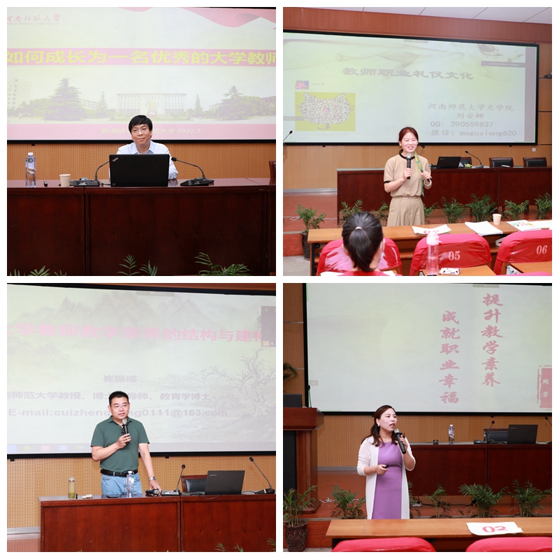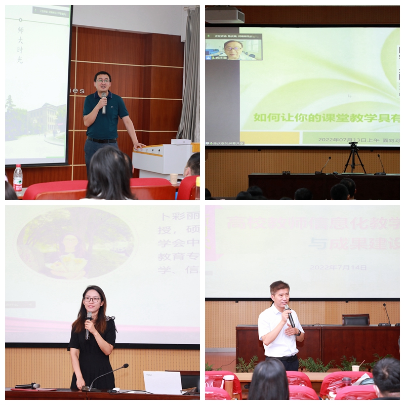 开班仪式后,河南师范大学副校长郭海明以《如何成长为一名优秀的大学教师》为题作首场报告会。浙江工业大学博导、教授陈庆章,西北师范大学博导李瑾瑜,河南师范大学教务处处长梁存良、副处长崔振成,以及全国高校教师教学大赛一等奖获得者董乐、周芳,河南省高校教师比赛一等奖获得者刘安娜等,分别从不同角度为参训教师作了内容涵盖全面、丰富多彩的辅导报告。报告现场,各位老师与专家积极互动、热烈讨论、气氛活跃。
