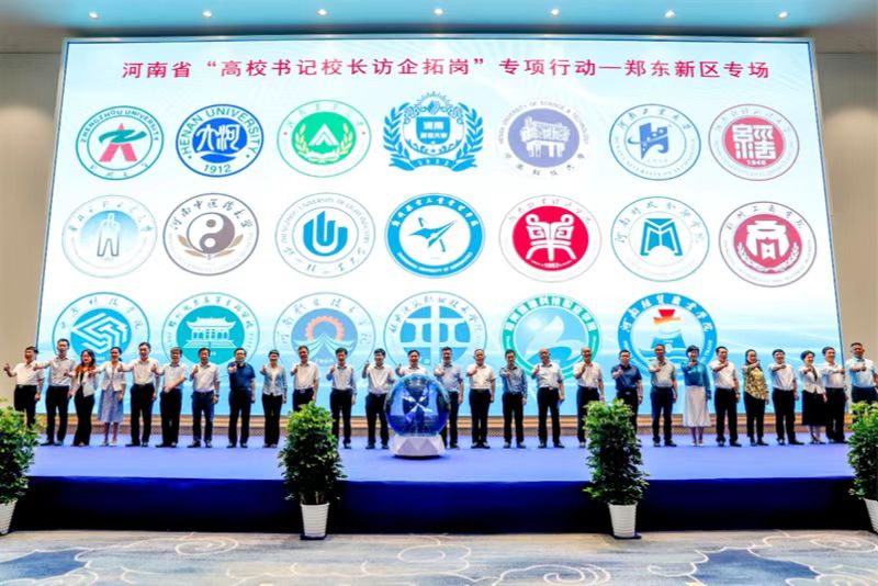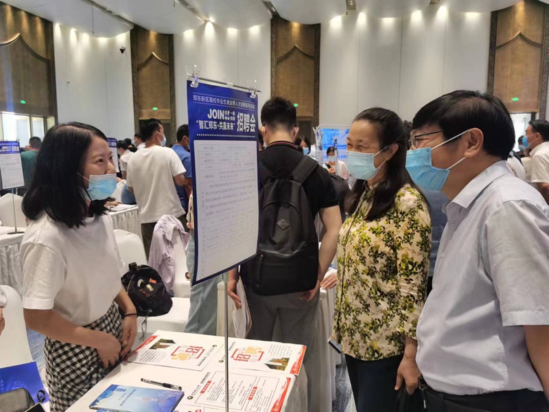 7月24日,郑东新区“智汇郑东•共赢未来”系列招聘活动启动仪式在龙子湖学术交流中心举行,20所高校领导和就业部门负责人参加了活动,500余家企业同步开展线上线下招聘。我校党委书记王雪云、校长李学志受邀出席启动仪式并开展访企拓岗促就业活动。