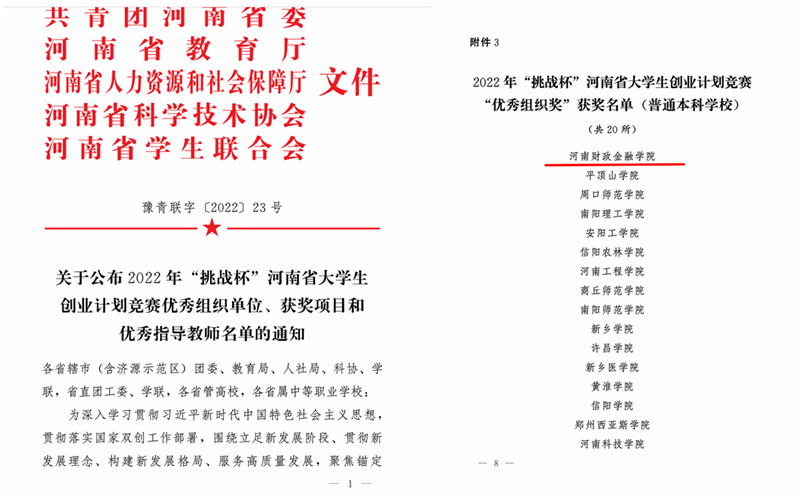 近日,2022年“挑战杯”河南省大学生创业计划竞赛结果公布,我校再创佳绩,取得金奖5项、银奖7项、铜奖13项的好成绩,并被授予“优秀组织奖”。